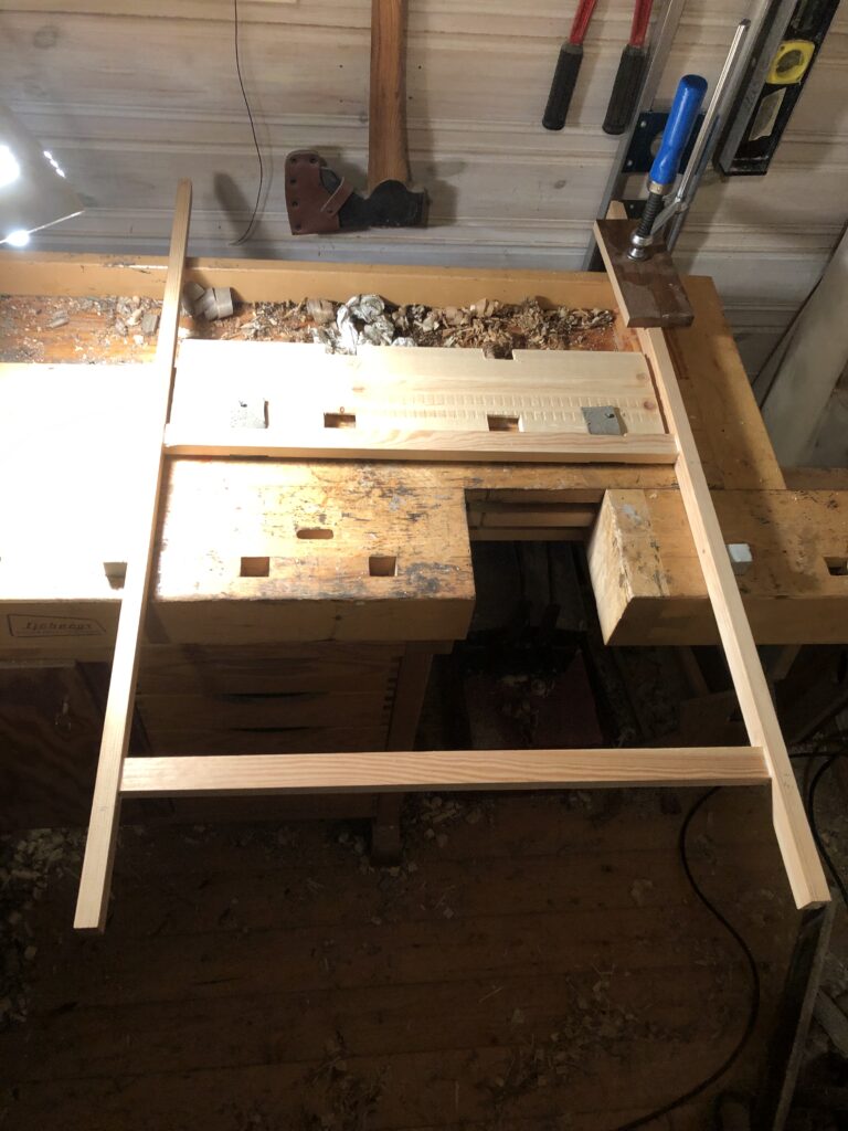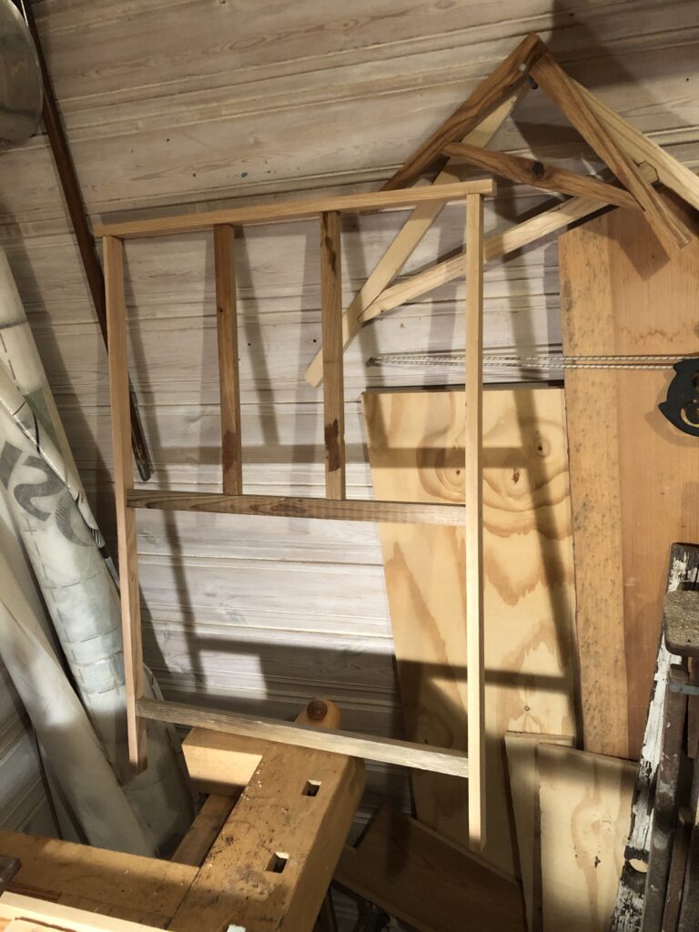 Tog ideer från internet och skapade en Grafikvagga av spillvirke. Några bitar från gamla trädgårdsmöbler, någon del från innertak på Attefallaren.